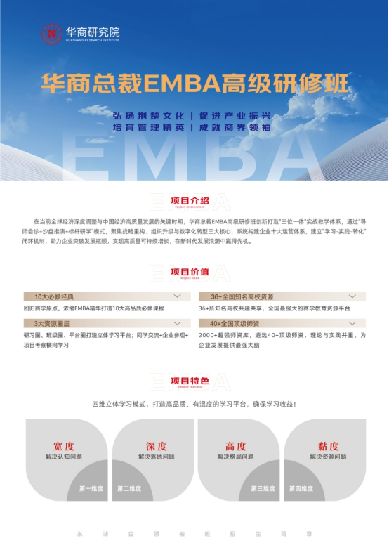 新一轮科技革命和产业变革加速演进,中国经济正以创新驱动为引领,迈向更高质量、更有效率、更加公平、更可持续的发展新阶段。作为新时代的企业家,既面临着转型升级的重大挑战,更迎来了创新发展的历史机遇。为助力我省软件企业在变局中开新局,华商研究院拟针对软件相关企业举办总裁EMBA高级研修班,现将有关事项通知如下: